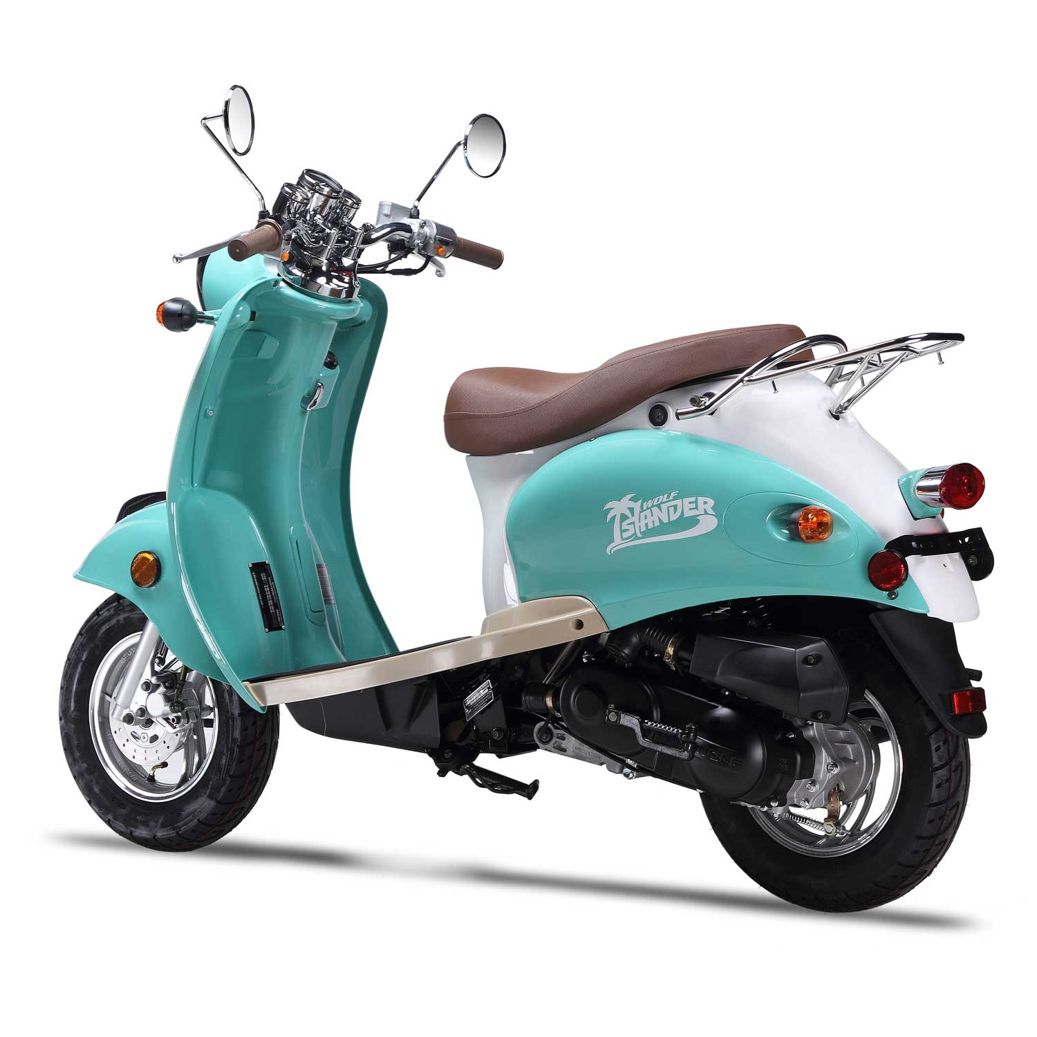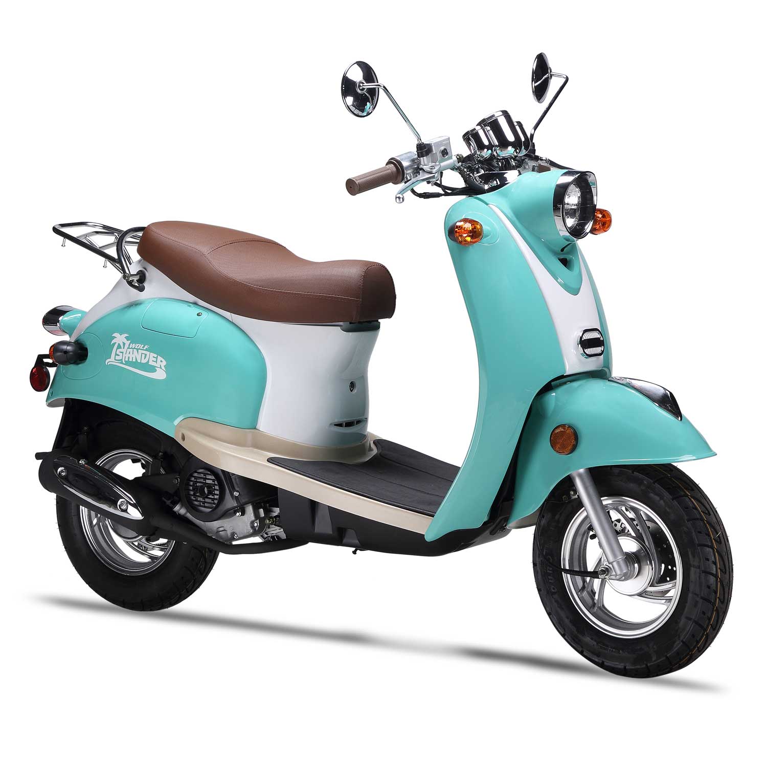 The Islander is Wolf’s economy-retro scooter—but don’t let the word “economy” fool you! This scooter is above average in its class and is built with the same quality parts as our other Wolf scooters. It gets excellent gas mileage and will suit light day-to-day, inner-city travel, no problem! The Islander enjoys long rides on the beach, getting coffee at the local coffee shop, or going to the movies on a Friday night! The Islander is very easy to keep happy, and just needs a little bit of gas, a good washing from time to time, and some tender loving care.