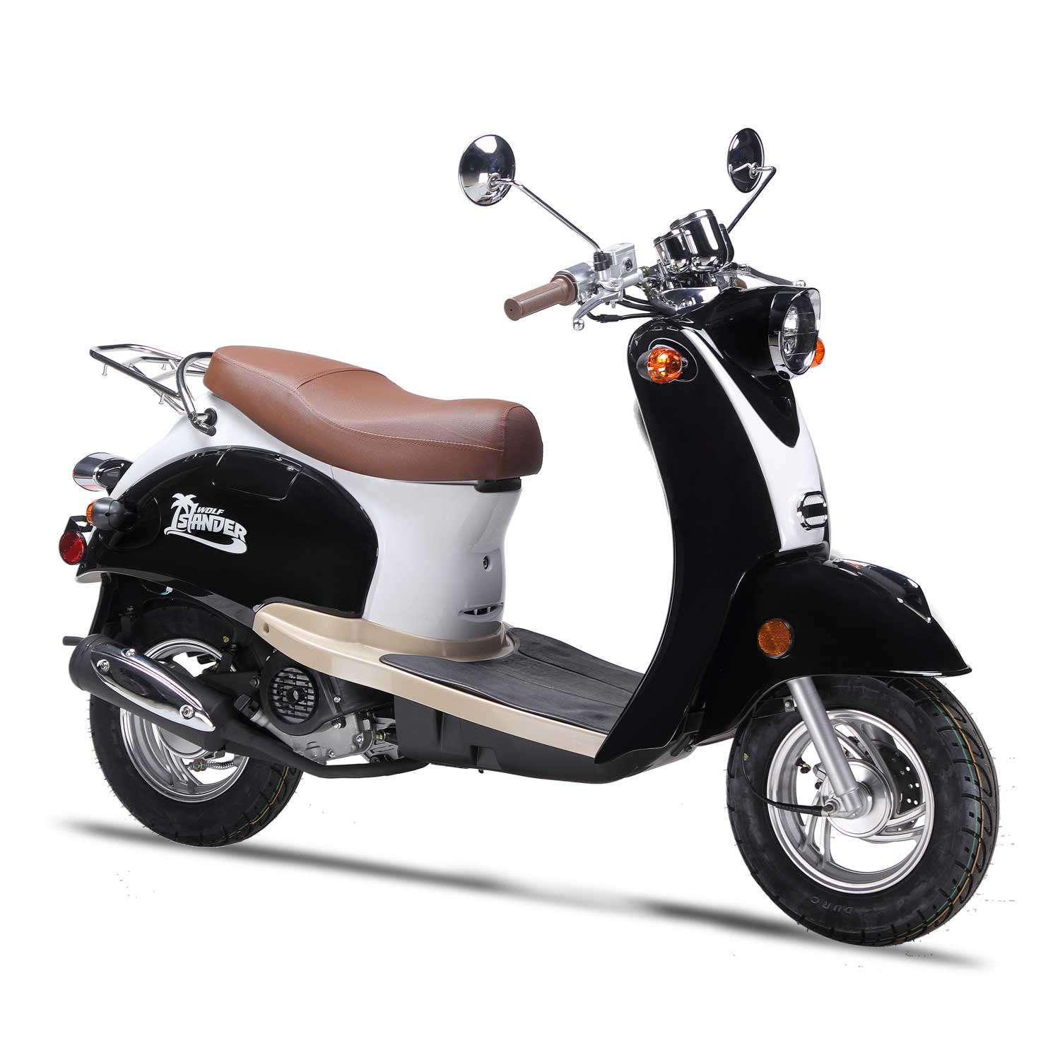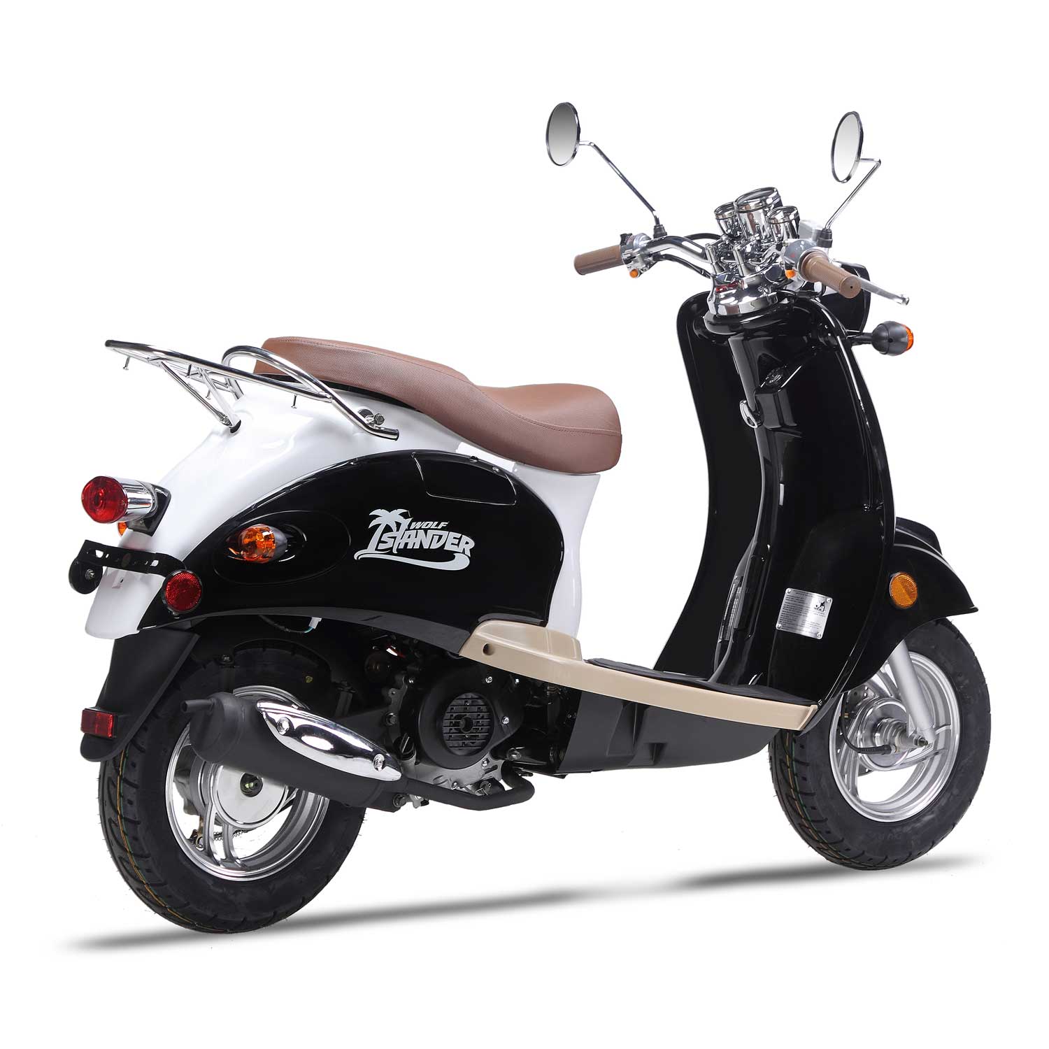 The Islander is Wolf’s economy-retro scooter—but don’t let the word “economy” fool you! This scooter is above average in its class and is built with the same quality parts as our other Wolf scooters. It gets excellent gas mileage and will suit light day-to-day, inner-city travel, no problem! The Islander enjoys long rides on the beach, getting coffee at the local coffee shop, or going to the movies on a Friday night! The Islander is very easy to keep happy, and just needs a little bit of gas, a good washing from time to time, and some tender loving care.