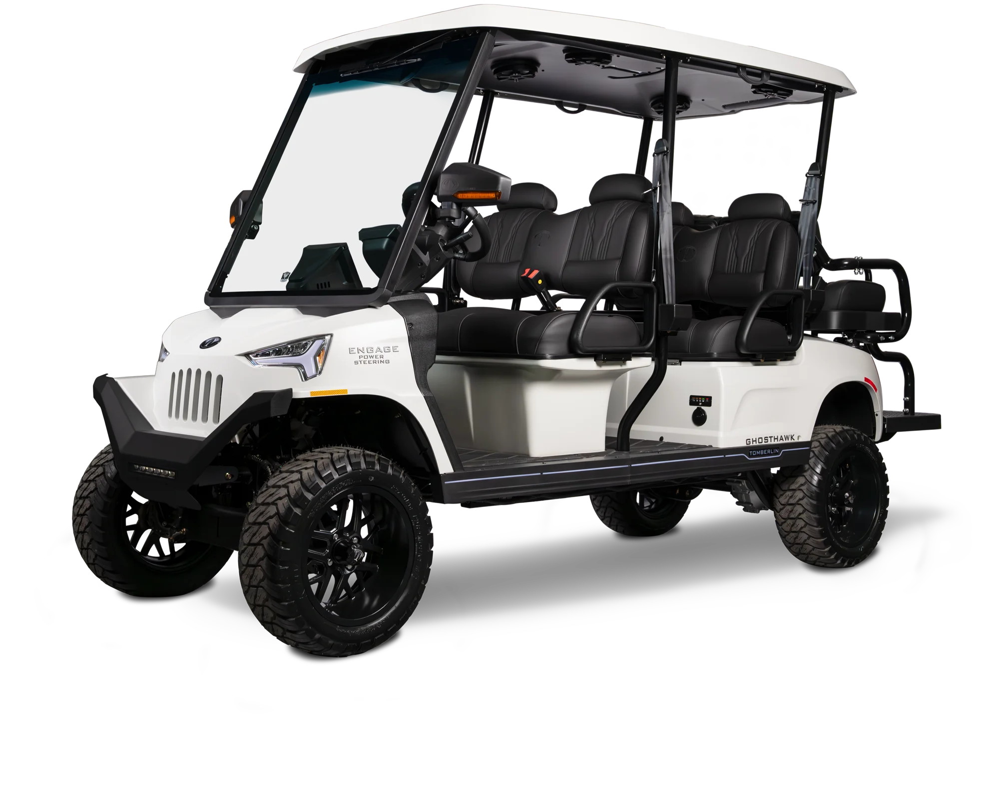 Experience unparalleled luxury with the Engage GHOSTHAWK, setting new standards for LSVs with its exclusive features, and a 6-inch lift, with automotive radial tires for an exceptionally smooth ride.